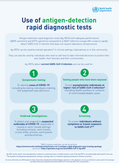 • Diagnostic testing for SARS-CoV-2 infection; Use of the antigen detection; Different tests for COVID-19